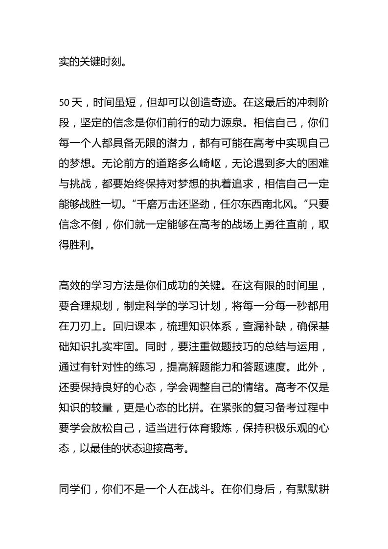 校长在高三50天高考冲刺誓师大会上的讲话子渊9个月前发布关注私信04210 ——预览已结束,还剩1页未读——开通会员后可免费下载高清完整文档 校长在高三50天高考冲刺誓师大会上的讲话此内容为付费资源,请付费后查看¥19.9¥999普通会员免费超级会员免费立即购买您当前未登录!建议登陆后购买,可保存购买订单格式docx页数3 页大小12.98 KB付费资源© 版权声明文章版权归作者所有,未经允许请勿转载。THE END发言稿 喜欢就支持一下吧点赞10 分享QQ空间微博QQ好友海报分享复制链接收藏