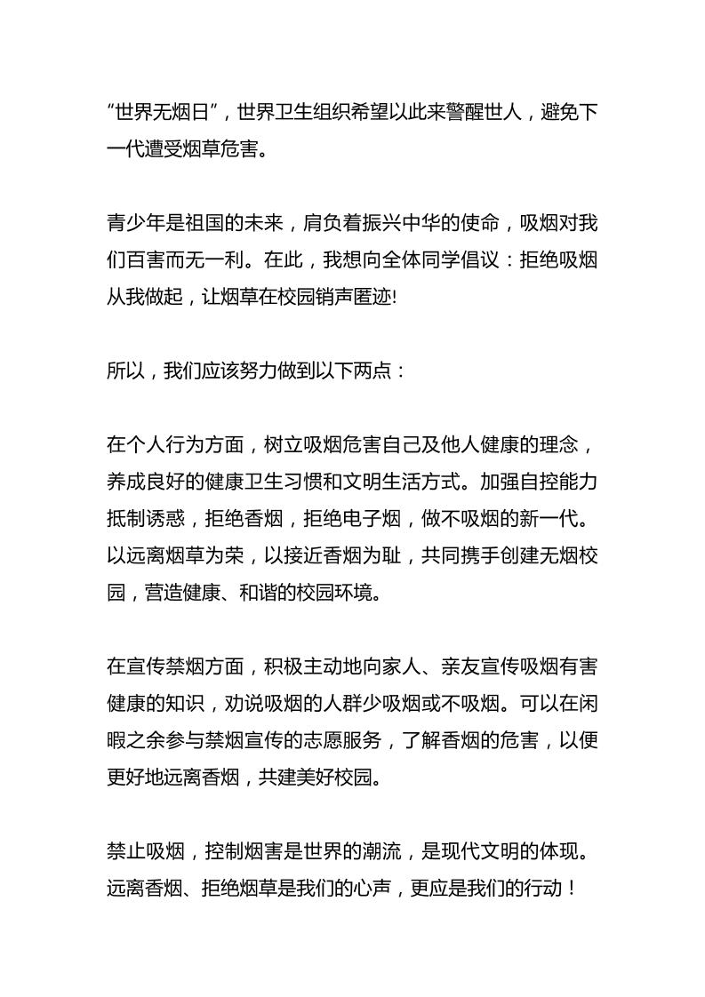 世界无烟日,校长在国旗下讲话:无烟校园,你我同行子渊9个月前发布关注私信05015 ——预览已结束,还剩1页未读——开通会员后可免费下载高清完整文档 世界无烟日,校长在国旗下讲话:无烟校园,你我同行此内容为付费资源,请付费后查看¥19.9¥999普通会员免费超级会员免费立即购买您当前未登录!建议登陆后购买,可保存购买订单格式docx页数3 页大小12.27 KB付费资源© 版权声明文章版权归作者所有,未经允许请勿转载。THE END国旗下讲话 喜欢就支持一下吧点赞15 分享QQ空间微博QQ好友海报分享复制链接收藏