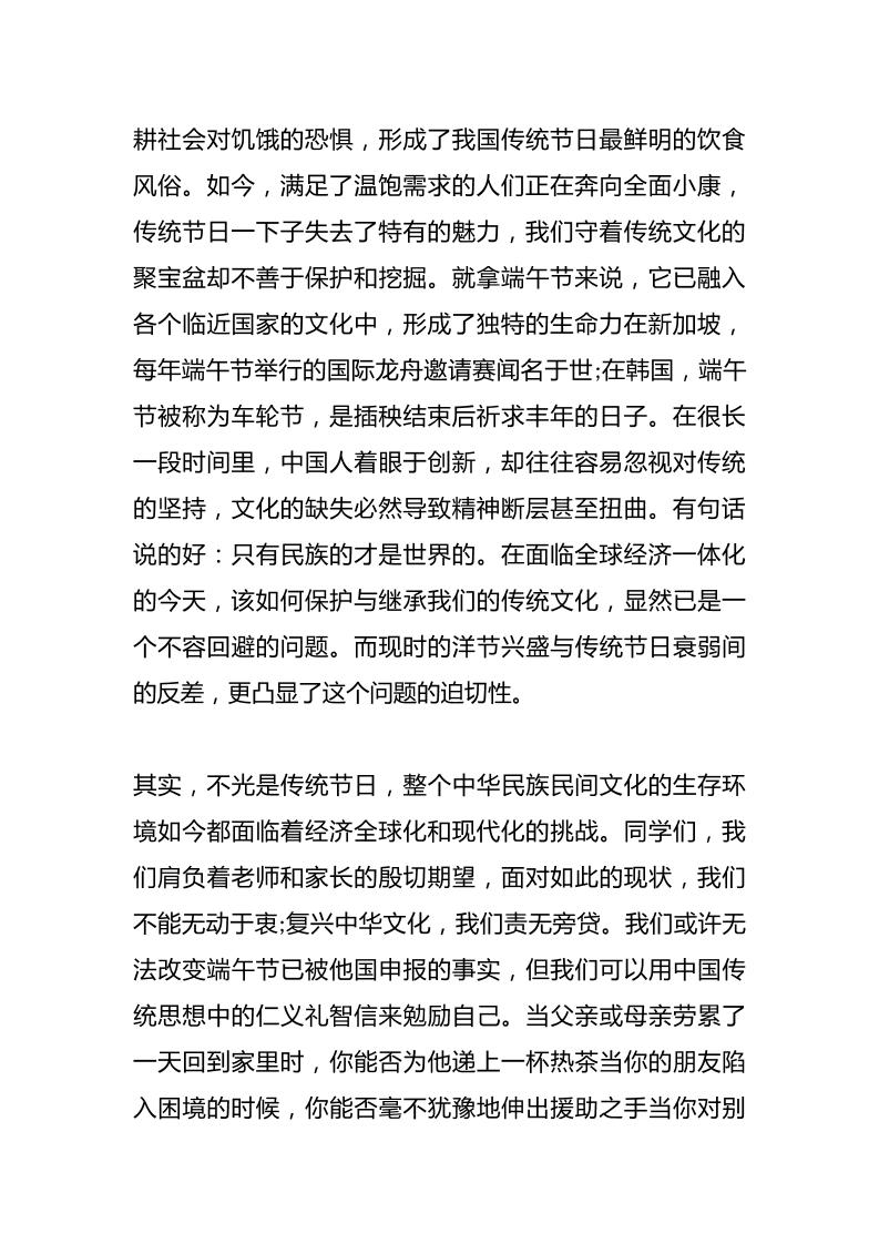 端午节,副校长在国旗下讲话:回味端午,传承民俗子渊9个月前发布关注私信0439 ——预览已结束,还剩1页未读——开通会员后可免费下载高清完整文档 端午节,副校长在国旗下讲话:回味端午,传承民俗此内容为付费资源,请付费后查看¥18.8¥999普通会员免费超级会员免费立即购买您当前未登录!建议登陆后购买,可保存购买订单格式docx页数3 页大小12.56 KB付费资源© 版权声明文章版权归作者所有,未经允许请勿转载。THE END国旗下讲话 喜欢就支持一下吧点赞9 分享QQ空间微博QQ好友海报分享复制链接收藏