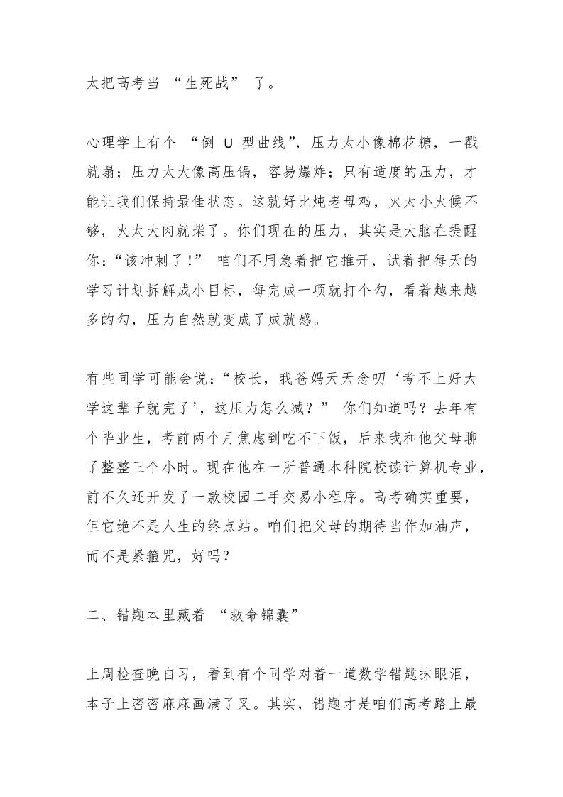 高考前心理疏导,校长讲话:高考只是人生的一个逗号,而不是句号子渊9个月前发布关注私信05010 ——预览已结束,还剩4页未读——开通会员后可免费下载高清完整文档 高考前心理疏导,校长讲话:高考只是人生的一个逗号,而不是句号此内容为付费资源,请付费后查看¥19.9¥999普通会员免费超级会员免费立即购买您当前未登录!建议登陆后购买,可保存购买订单格式docx页数6 页大小15.04 KB付费资源© 版权声明文章版权归作者所有,未经允许请勿转载。THE END国旗下讲话 喜欢就支持一下吧点赞10 分享QQ空间微博QQ好友海报分享复制链接收藏