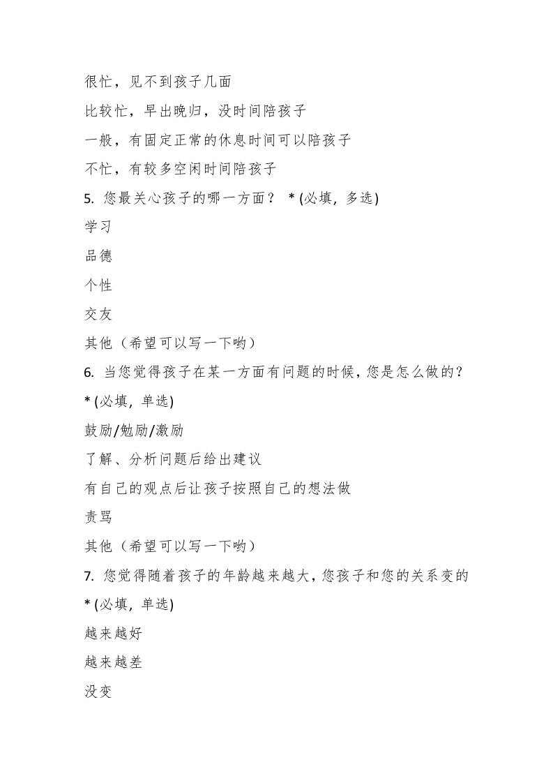 亲子沟通问卷调查(家长)子渊6个月前发布关注私信0326 ——预览已结束,还剩6页未读——开通会员后可免费下载高清完整文档 亲子沟通问卷调查(家长)此内容为付费资源,请付费后查看¥19.9¥999普通会员免费超级会员免费立即购买您当前未登录!建议登陆后购买,可保存购买订单格式docx页数8 页大小13.95 KB付费资源© 版权声明文章版权归作者所有,未经允许请勿转载。THE END管理相关 喜欢就支持一下吧点赞6 分享QQ空间微博QQ好友海报分享复制链接收藏
