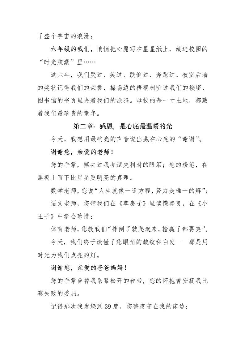小学毕业典礼学生代表发言稿-以少年之名,赴星辰之约子渊6个月前发布关注私信0419 ——预览已结束,还剩3页未读——开通会员后可免费下载高清完整文档 小学毕业典礼学生代表发言稿-以少年之名,赴星辰之约此内容为付费资源,请付费后查看¥18.8¥999普通会员免费超级会员免费立即购买您当前未登录!建议登陆后购买,可保存购买订单格式docx页数5 页大小14.32 KB付费资源© 版权声明文章版权归作者所有,未经允许请勿转载。THE END管理相关 喜欢就支持一下吧点赞9 分享QQ空间微博QQ好友海报分享复制链接收藏