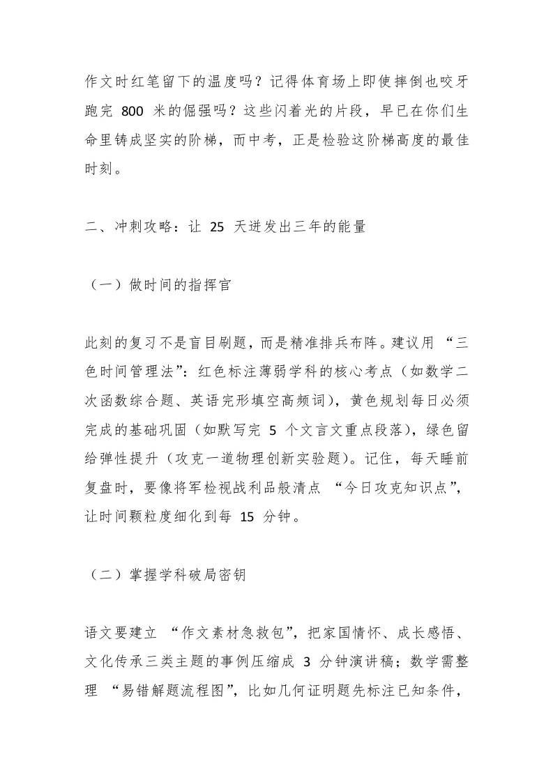 2025中考“倒计时25天”动员会,校长致辞:让我们以战士的姿态,吹响最后的冲锋号子渊7个月前发布关注私信04015 ——预览已结束,还剩2页未读——开通会员后可免费下载高清完整文档 2025中考“倒计时25天”动员会,校长致辞:让我们以战士的姿态,吹响最后的冲锋号此内容为付费资源,请付费后查看¥18.8¥999普通会员免费超级会员免费立即购买您当前未登录!建议登陆后购买,可保存购买订单格式docx页数4 页大小13.53 KB付费资源© 版权声明文章版权归作者所有,未经允许请勿转载。THE END发言稿 喜欢就支持一下吧点赞15 分享QQ空间微博QQ好友海报分享复制链接收藏