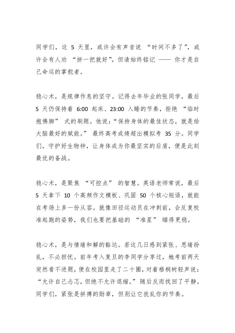 高考倒计时5天冲刺动员,校长讲话:用专注书写答卷,用坚持浇灌梦想子渊7个月前发布关注私信02712 ——预览已结束,还剩3页未读——开通会员后可免费下载高清完整文档 高考倒计时5天冲刺动员,校长讲话:用专注书写答卷,用坚持浇灌梦想此内容为付费资源,请付费后查看¥18.8¥999普通会员免费超级会员免费立即购买您当前未登录!建议登陆后购买,可保存购买订单格式docx页数5 页大小14.26 KB付费资源© 版权声明文章版权归作者所有,未经允许请勿转载。THE END发言稿 喜欢就支持一下吧点赞12 分享QQ空间微博QQ好友海报分享复制链接收藏