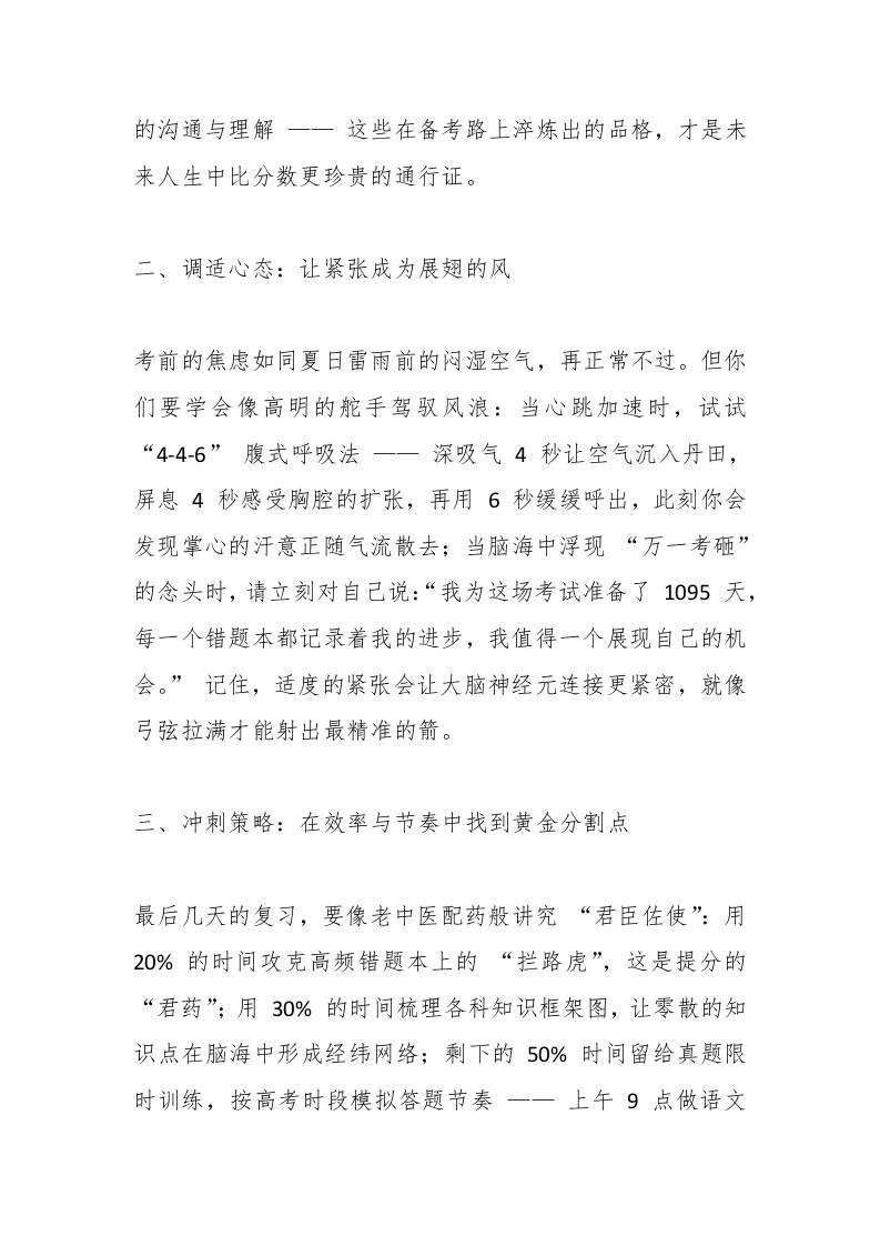 校长在2025届高三学子高考出征仪式上的讲话子渊7个月前发布关注私信02011 ——预览已结束,还剩3页未读——开通会员后可免费下载高清完整文档 校长在2025届高三学子高考出征仪式上的讲话此内容为付费资源,请付费后查看¥19.9¥999普通会员免费超级会员免费立即购买您当前未登录!建议登陆后购买,可保存购买订单格式docx页数5 页大小14.94 KB付费资源© 版权声明文章版权归作者所有,未经允许请勿转载。THE END发言稿 喜欢就支持一下吧点赞11 分享QQ空间微博QQ好友海报分享复制链接收藏