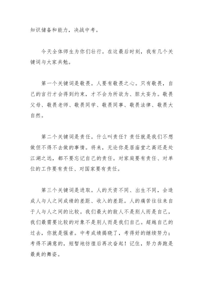 中考壮行大会,校长讲话无论你将来过得怎样,总有老师的牵挂子渊7个月前发布关注私信03411 ——预览已结束,还剩2页未读——开通会员后可免费下载高清完整文档 中考壮行大会,校长讲话无论你将来过得怎样,总有老师的牵挂此内容为付费资源,请付费后查看¥18.8¥999普通会员免费超级会员免费立即购买您当前未登录!建议登陆后购买,可保存购买订单格式doc页数4 页大小15.50 KB付费资源© 版权声明文章版权归作者所有,未经允许请勿转载。THE END发言稿 喜欢就支持一下吧点赞11 分享QQ空间微博QQ好友海报分享复制链接收藏