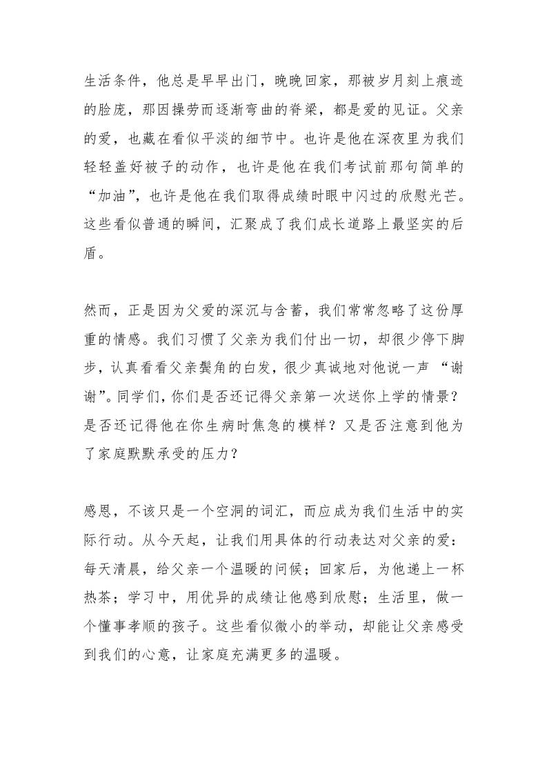 父亲节,校长在国旗下讲话:父爱如山,感恩相伴子渊7个月前发布关注私信0446 ——预览已结束,还剩1页未读——开通会员后可免费下载高清完整文档 父亲节,校长在国旗下讲话:父爱如山,感恩相伴此内容为付费资源,请付费后查看¥19.9¥999普通会员免费超级会员免费立即购买您当前未登录!建议登陆后购买,可保存购买订单格式docx页数3 页大小12.79 KB付费资源© 版权声明文章版权归作者所有,未经允许请勿转载。THE END发言稿 喜欢就支持一下吧点赞6 分享QQ空间微博QQ好友海报分享复制链接收藏