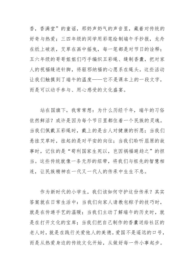 端午节国旗下的讲话:粽香里的家国梦子渊7个月前发布关注私信02713 ——预览已结束,还剩1页未读——开通会员后可免费下载高清完整文档 端午节国旗下的讲话:粽香里的家国梦此内容为付费资源,请付费后查看¥18.8¥999普通会员免费超级会员免费立即购买您当前未登录!建议登陆后购买,可保存购买订单格式docx页数3 页大小13.06 KB付费资源© 版权声明文章版权归作者所有,未经允许请勿转载。THE END国旗下讲话 喜欢就支持一下吧点赞13 分享QQ空间微博QQ好友海报分享复制链接收藏