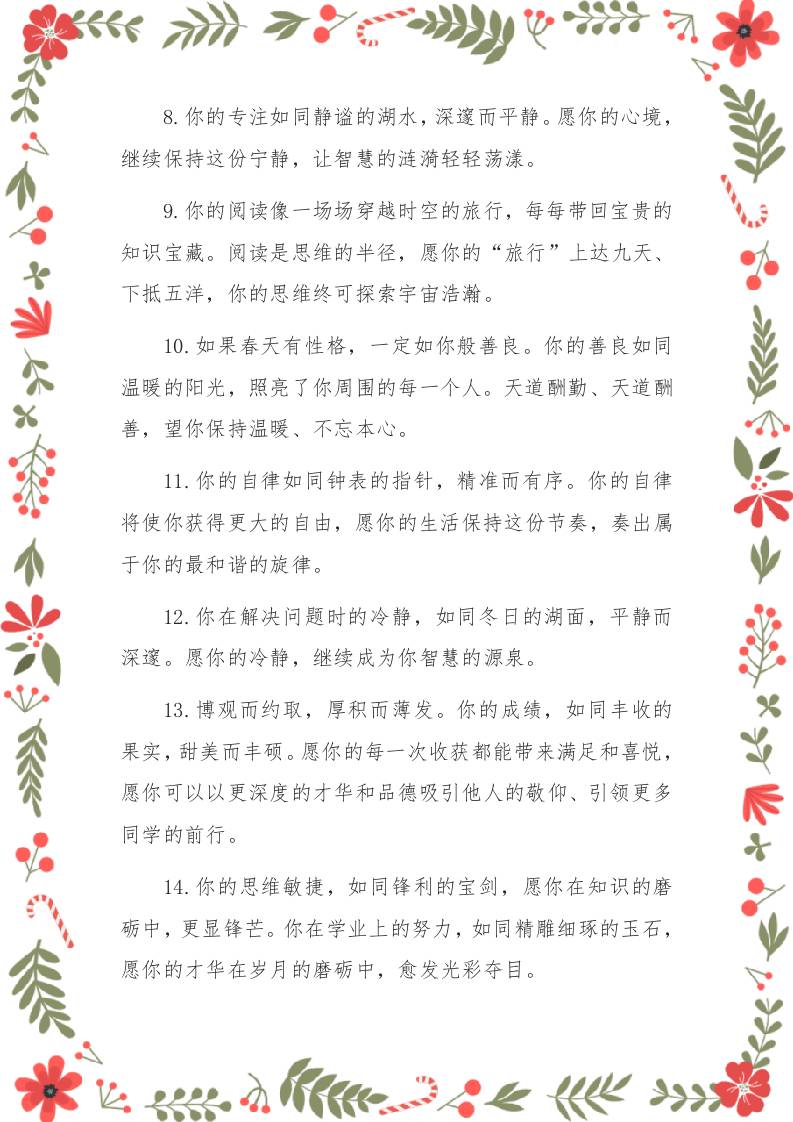 50句期末评语,给不同学生的诗意评价好牛3个月前发布关注私信0478 ——预览已结束,还剩5页未读——开通会员后可免费下载高清完整文档 50句期末评语,给不同学生的诗意评价此内容为付费资源,请付费后查看¥19.9¥999普通会员免费超级会员免费立即购买您当前未登录!建议登陆后购买,可保存购买订单格式docx页数7 页大小360.81 KB付费资源© 版权声明文章版权归作者所有,未经允许请勿转载。THE END评语 喜欢就支持一下吧点赞8 分享QQ空间微博QQ好友海报分享复制链接收藏
