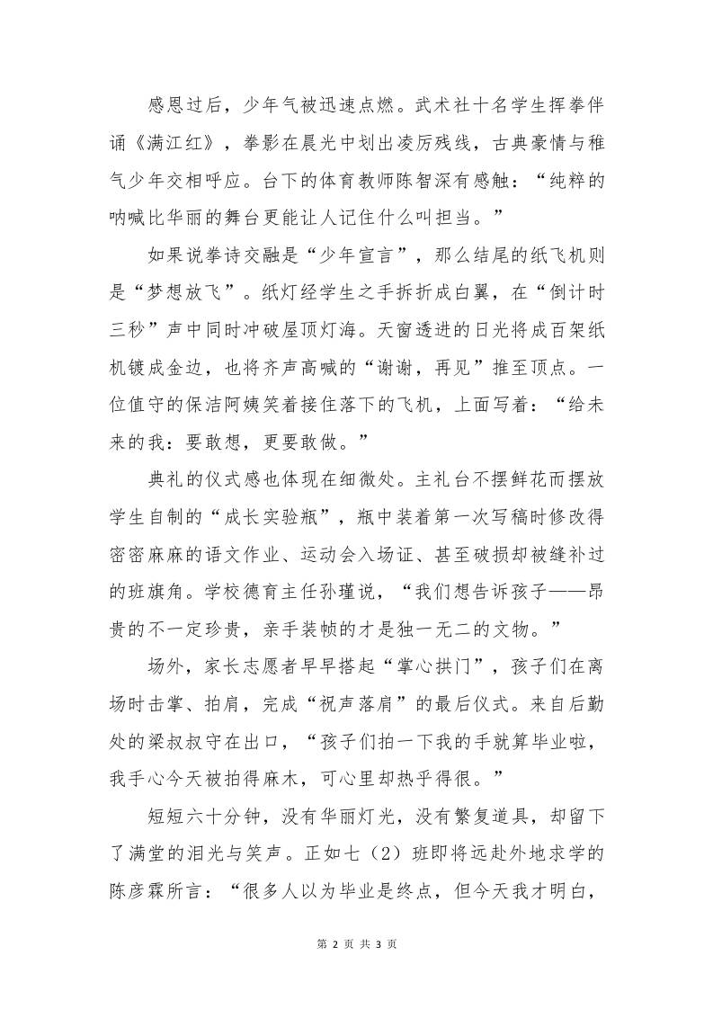 2025届毕业典礼新闻稿子渊7个月前发布关注私信03812 ——预览已结束,还剩1页未读——开通会员后可免费下载高清完整文档 2025届毕业典礼新闻稿此内容为付费资源,请付费后查看¥19.9¥999普通会员免费超级会员免费立即购买您当前未登录!建议登陆后购买,可保存购买订单格式docx页数3 页大小152.48 KB付费资源© 版权声明文章版权归作者所有,未经允许请勿转载。THE END发言稿 喜欢就支持一下吧点赞12 分享QQ空间微博QQ好友海报分享复制链接收藏