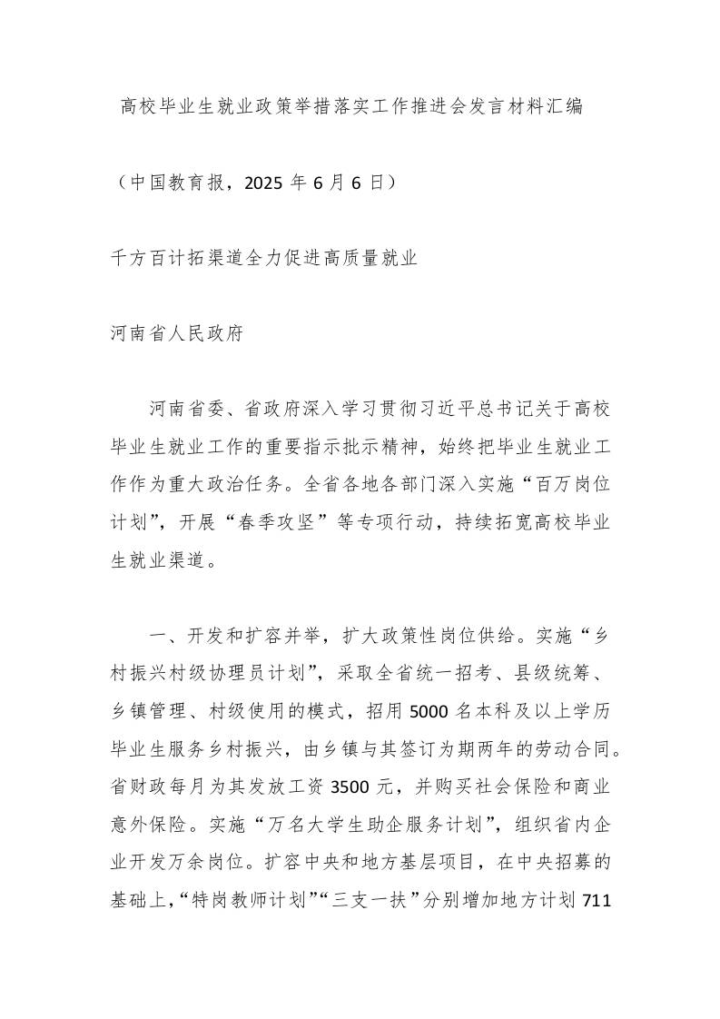 (6篇)高校毕业生就业政策举措落实工作推进会发言材料汇编子渊7个月前发布关注私信02414 ——预览已结束,还剩53页未读——开通会员后可免费下载高清完整文档 (6篇)高校毕业生就业政策举措落实工作推进会发言材料汇编此内容为付费资源,请付费后查看¥18.8¥999普通会员免费超级会员免费立即购买您当前未登录!建议登陆后购买,可保存购买订单格式docx页数55 页大小29.77 KB付费资源© 版权声明文章版权归作者所有,未经允许请勿转载。THE END发言稿 喜欢就支持一下吧点赞14 分享QQ空间微博QQ好友海报分享复制链接收藏