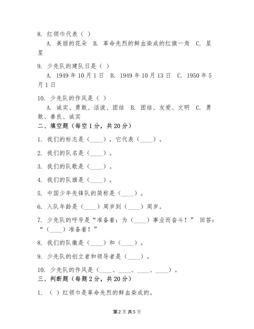附件:少先队入队知识测试卷子渊7个月前发布关注私信04310 ——预览已结束,还剩3页未读——开通会员后可免费下载高清完整文档 附件:少先队入队知识测试卷此内容为付费资源,请付费后查看¥18.8¥999普通会员免费超级会员免费立即购买您当前未登录!建议登陆后购买,可保存购买订单格式docx页数5 页大小220.70 KB付费资源© 版权声明文章版权归作者所有,未经允许请勿转载。THE END管理相关 喜欢就支持一下吧点赞10 分享QQ空间微博QQ好友海报分享复制链接收藏