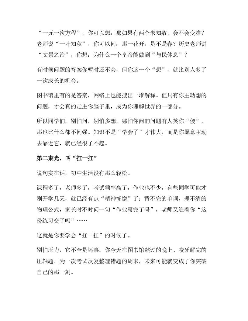 2025年秋季开学典礼上校长讲话:想一想、扛一扛、靠一靠!照亮青春的三束光!子渊6个月前发布关注私信04514 ——预览已结束,还剩2页未读——开通会员后可免费下载高清完整文档 2025年秋季开学典礼上校长讲话:想一想、扛一扛、靠一靠!照亮青春的三束光!此内容为付费资源,请付费后查看¥18.8¥999普通会员免费超级会员免费立即购买您当前未登录!建议登陆后购买,可保存购买订单格式docx页数4 页大小17.03 KB付费资源© 版权声明文章版权归作者所有,未经允许请勿转载。THE END发言稿 喜欢就支持一下吧点赞14 分享QQ空间微博QQ好友海报分享复制链接收藏