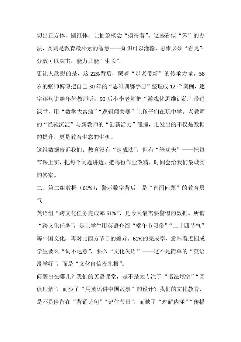 期末教学质量分析会校长总结发言:三个数据背后的教育密码子渊6个月前发布关注私信02611 ——预览已结束,还剩3页未读——开通会员后可免费下载高清完整文档 期末教学质量分析会校长总结发言:三个数据背后的教育密码此内容为付费资源,请付费后查看¥18.8¥999普通会员免费超级会员免费立即购买您当前未登录!建议登陆后购买,可保存购买订单格式docx页数5 页大小14.59 KB付费资源© 版权声明文章版权归作者所有,未经允许请勿转载。THE END发言稿 喜欢就支持一下吧点赞11 分享QQ空间微博QQ好友海报分享复制链接收藏