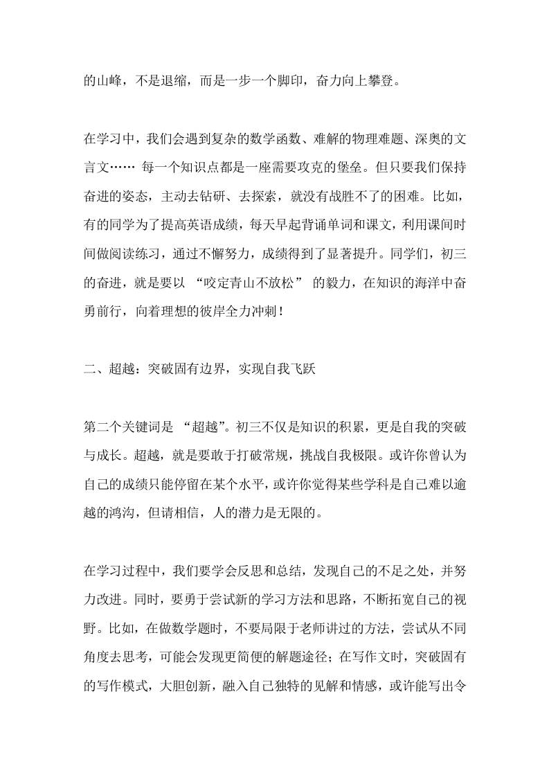 走进初三启动仪式,校长讲话:燃梦初三,向光而行子渊6个月前发布关注私信0519 ——预览已结束,还剩3页未读——开通会员后可免费下载高清完整文档 走进初三启动仪式,校长讲话:燃梦初三,向光而行此内容为付费资源,请付费后查看¥18.8¥999普通会员免费超级会员免费立即购买您当前未登录!建议登陆后购买,可保存购买订单格式docx页数5 页大小13.88 KB付费资源© 版权声明文章版权归作者所有,未经允许请勿转载。THE END发言稿 喜欢就支持一下吧点赞9 分享QQ空间微博QQ好友海报分享复制链接收藏