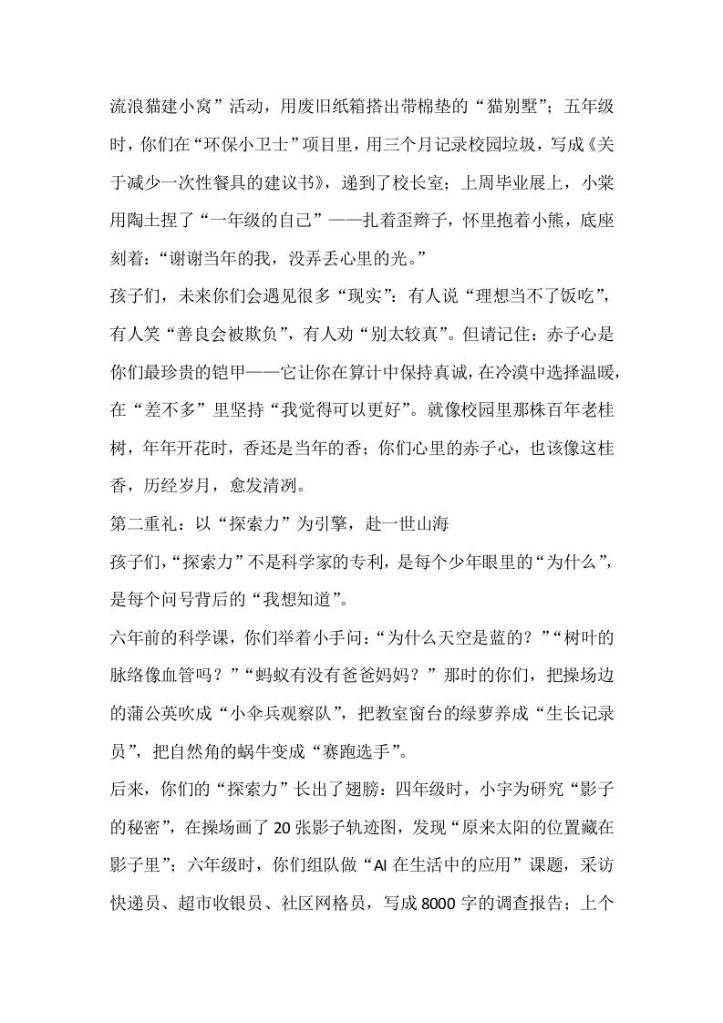 2025届毕业典礼,小学校长致辞:致少年的三重成长礼子渊6个月前发布关注私信03014 ——预览已结束,还剩2页未读——开通会员后可免费下载高清完整文档 2025届毕业典礼,小学校长致辞:致少年的三重成长礼此内容为付费资源,请付费后查看¥19.9¥999普通会员免费超级会员免费立即购买您当前未登录!建议登陆后购买,可保存购买订单格式docx页数4 页大小14.53 KB付费资源© 版权声明文章版权归作者所有,未经允许请勿转载。THE END管理相关 喜欢就支持一下吧点赞14 分享QQ空间微博QQ好友海报分享复制链接收藏