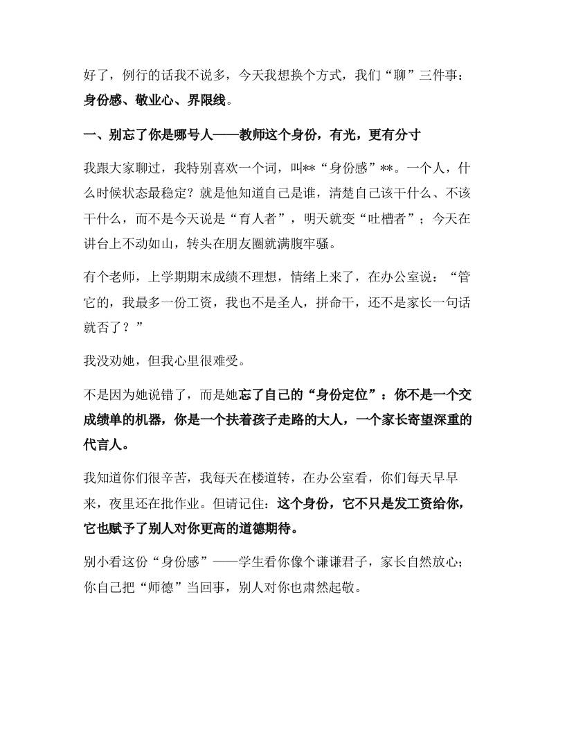 师德师风专题培训会上,校长讲话:站好讲台人,守住教育心——做学生敬重、家长信任、同事佩服的那种好老师!子渊6个月前发布关注私信04315 ——预览已结束,还剩4页未读——开通会员后可免费下载高清完整文档 师德师风专题培训会上,校长讲话:站好讲台人,守住教育心——做学生敬重、家长信任、同事佩服的那种好老师!此内容为付费资源,请付费后查看¥19.9¥999普通会员免费超级会员免费立即购买您当前未登录!建议登陆后购买,可保存购买订单格式docx页数6 页大小19.57 KB付费资源© 版权声明文章版权归作者所有,未经允许请勿转载。THE END发言稿 喜欢就支持一下吧点赞15 分享QQ空间微博QQ好友海报分享复制链接收藏