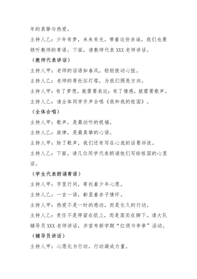 2025年国庆节升旗仪式主持词:七十六载春秋路,少年丹心映征途子渊5个月前发布关注私信0277 ——预览已结束,还剩1页未读——开通会员后可免费下载高清完整文档 2025年国庆节升旗仪式主持词:七十六载春秋路,少年丹心映征途此内容为付费资源,请付费后查看¥19.9¥999普通会员免费超级会员免费立即购买您当前未登录!建议登陆后购买,可保存购买订单格式docx页数3 页大小12.79 KB付费资源© 版权声明文章版权归作者所有,未经允许请勿转载。THE END国旗下讲话 喜欢就支持一下吧点赞7 分享QQ空间微博QQ好友海报分享复制链接收藏