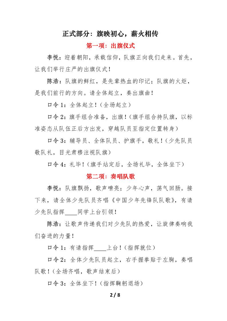 2025年少先队建队日分批入队仪式主持词:星火承志,我们光荣启程子渊5个月前发布关注私信0345 ——预览已结束,还剩6页未读——开通会员后可免费下载高清完整文档 2025年少先队建队日分批入队仪式主持词:星火承志,我们光荣启程此内容为付费资源,请付费后查看¥19.9¥999普通会员免费超级会员免费立即购买您当前未登录!建议登陆后购买,可保存购买订单格式docx页数8 页大小21.71 KB付费资源© 版权声明文章版权归作者所有,未经允许请勿转载。THE END发言稿 喜欢就支持一下吧点赞5 分享QQ空间微博QQ好友海报分享复制链接收藏
