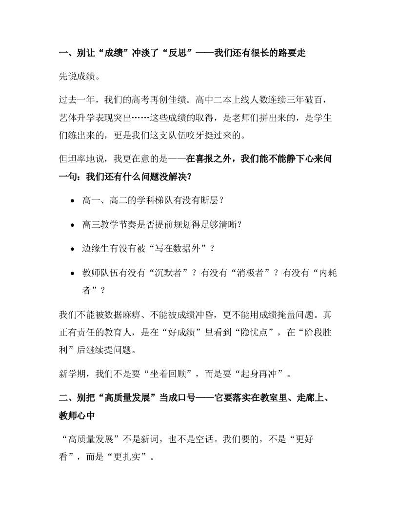 2025年秋季学期全体教职工大会上,校长讲话:坚守初心再出发,走好学校高质量发展的“每一步”!子渊5个月前发布关注私信05114 ——预览已结束,还剩5页未读——开通会员后可免费下载高清完整文档 2025年秋季学期全体教职工大会上,校长讲话:坚守初心再出发,走好学校高质量发展的“每一步”!此内容为付费资源,请付费后查看¥19.9¥999普通会员免费超级会员免费立即购买您当前未登录!建议登陆后购买,可保存购买订单格式docx页数7 页大小21.65 KB付费资源© 版权声明文章版权归作者所有,未经允许请勿转载。THE END发言稿 喜欢就支持一下吧点赞14 分享QQ空间微博QQ好友海报分享复制链接收藏