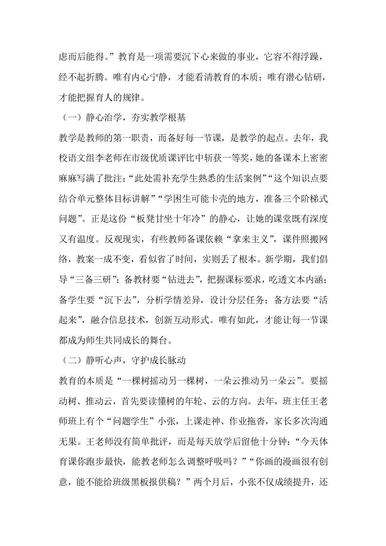 中小学校长在2025秋季开学全体教师大会上讲话:教育者的3个“修炼密码”——静以修身,韧以立业,和以润校子渊5个月前发布关注私信0465 ——预览已结束,还剩5页未读——开通会员后可免费下载高清完整文档 中小学校长在2025秋季开学全体教师大会上讲话:教育者的3个“修炼密码”——静以修身,韧以立业,和以润校此内容为付费资源,请付费后查看¥18.8¥999普通会员免费超级会员免费立即购买您当前未登录!建议登陆后购买,可保存购买订单格式docx页数7 页大小17.26 KB付费资源© 版权声明文章版权归作者所有,未经允许请勿转载。THE END发言稿 喜欢就支持一下吧点赞5 分享QQ空间微博QQ好友海报分享复制链接收藏