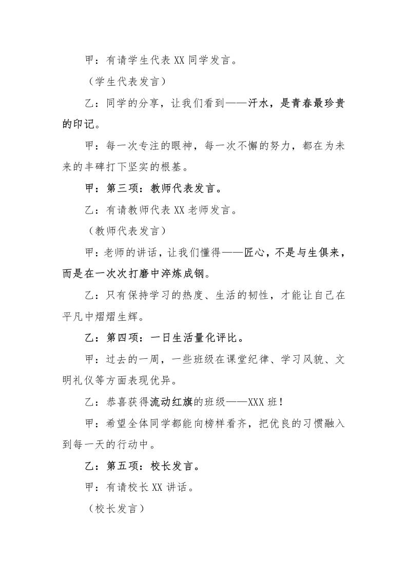 2025年秋季第一学期升旗仪式主持词(21周):第13周汗水是金镶日月,匠心如火铸丰碑子渊5个月前发布关注私信02214 ——预览已结束,还剩1页未读——开通会员后可免费下载高清完整文档 2025年秋季第一学期升旗仪式主持词(21周):第13周汗水是金镶日月,匠心如火铸丰碑此内容为付费资源,请付费后查看¥18.8¥999普通会员免费超级会员免费立即购买您当前未登录!建议登陆后购买,可保存购买订单格式docx页数3 页大小335.97 KB付费资源© 版权声明文章版权归作者所有,未经允许请勿转载。THE END国旗下讲话 喜欢就支持一下吧点赞14 分享QQ空间微博QQ好友海报分享复制链接收藏