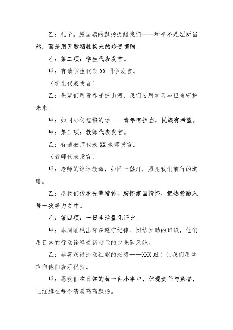 2025年秋季第一学期升旗仪式主持词(21周):第8周江山披上赤霞“衣”,热血浇开钢铁花子渊5个月前发布关注私信02213 ——预览已结束,还剩1页未读——开通会员后可免费下载高清完整文档 2025年秋季第一学期升旗仪式主持词(21周):第8周江山披上赤霞“衣”,热血浇开钢铁花此内容为付费资源,请付费后查看¥19.9¥999普通会员免费超级会员免费立即购买您当前未登录!建议登陆后购买,可保存购买订单格式docx页数3 页大小342.26 KB付费资源© 版权声明文章版权归作者所有,未经允许请勿转载。THE END国旗下讲话 喜欢就支持一下吧点赞13 分享QQ空间微博QQ好友海报分享复制链接收藏