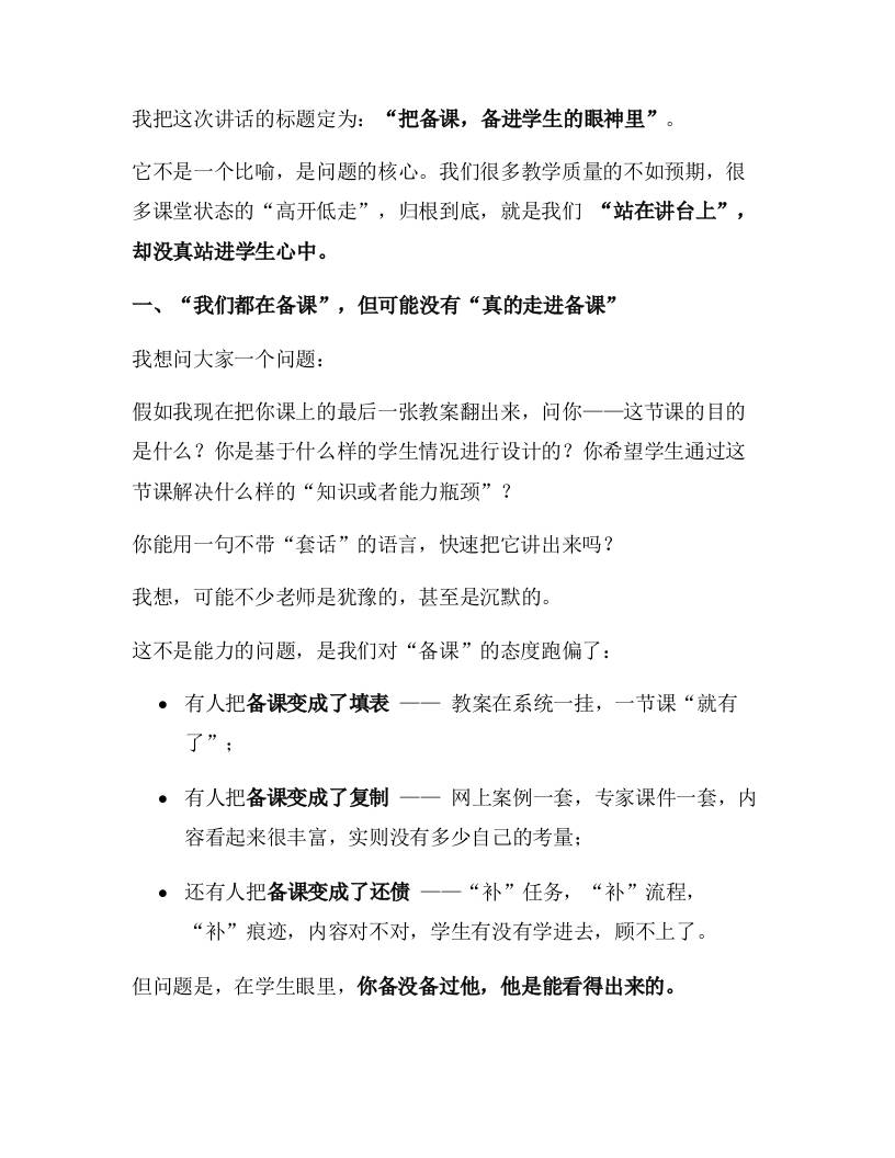 教学副校长在全体教师会上的发言:把备课,备进学生的眼神里!子渊5个月前发布关注私信0269 ——预览已结束,还剩4页未读——开通会员后可免费下载高清完整文档 教学副校长在全体教师会上的发言:把备课,备进学生的眼神里!此内容为付费资源,请付费后查看¥19.9¥999普通会员免费超级会员免费立即购买您当前未登录!建议登陆后购买,可保存购买订单格式docx页数6 页大小20.64 KB付费资源© 版权声明文章版权归作者所有,未经允许请勿转载。THE END发言稿 喜欢就支持一下吧点赞9 分享QQ空间微博QQ好友海报分享复制链接收藏