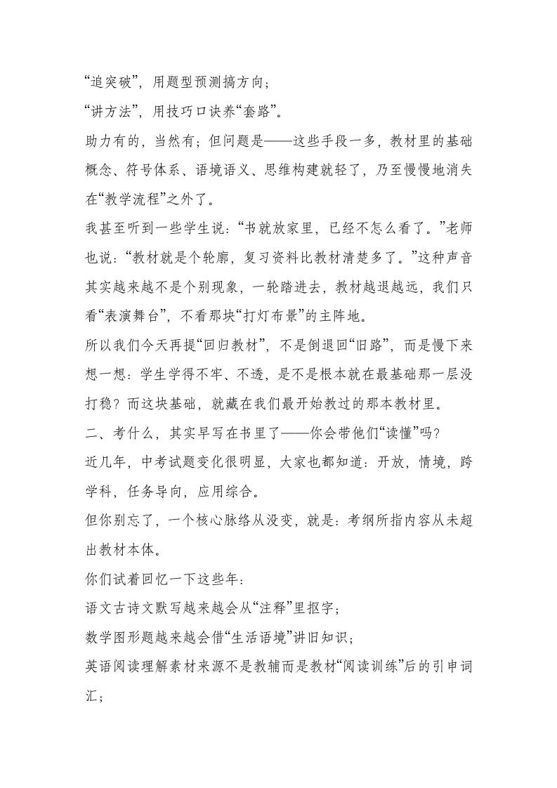 教学副校长在初三毕业班教师会上讲话:强化教材中心地位,精准靶向教学提分率子渊5个月前发布关注私信0397 ——预览已结束,还剩4页未读——开通会员后可免费下载高清完整文档 教学副校长在初三毕业班教师会上讲话:强化教材中心地位,精准靶向教学提分率此内容为付费资源,请付费后查看¥19.9¥999普通会员免费超级会员免费立即购买您当前未登录!建议登陆后购买,可保存购买订单格式docx页数6 页大小16.19 KB付费资源© 版权声明文章版权归作者所有,未经允许请勿转载。THE END发言稿 喜欢就支持一下吧点赞7 分享QQ空间微博QQ好友海报分享复制链接收藏