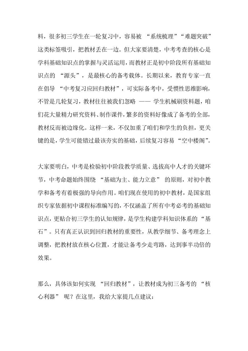 教学副校长在初三毕业班教师会上讲话:抓实“回归教材”,提升初三中考备考实效子渊5个月前发布关注私信0286 ——预览已结束,还剩4页未读——开通会员后可免费下载高清完整文档 教学副校长在初三毕业班教师会上讲话:抓实“回归教材”,提升初三中考备考实效此内容为付费资源,请付费后查看¥18.8¥999普通会员免费超级会员免费立即购买您当前未登录!建议登陆后购买,可保存购买订单格式docx页数6 页大小14.60 KB付费资源© 版权声明文章版权归作者所有,未经允许请勿转载。THE END发言稿 喜欢就支持一下吧点赞6 分享QQ空间微博QQ好友海报分享复制链接收藏
