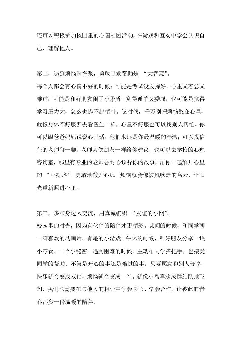 心理健康教育,校长国旗下讲话:呵护阳光心灵,绽放青春光彩子渊4个月前发布关注私信0408 ——预览已结束,还剩1页未读——开通会员后可免费下载高清完整文档 心理健康教育,校长国旗下讲话:呵护阳光心灵,绽放青春光彩此内容为付费资源,请付费后查看¥18.8¥999普通会员免费超级会员免费立即购买您当前未登录!建议登陆后购买,可保存购买订单格式docx页数3 页大小13.42 KB付费资源© 版权声明文章版权归作者所有,未经允许请勿转载。THE END国旗下讲话 喜欢就支持一下吧点赞8 分享QQ空间微博QQ好友海报分享复制链接收藏