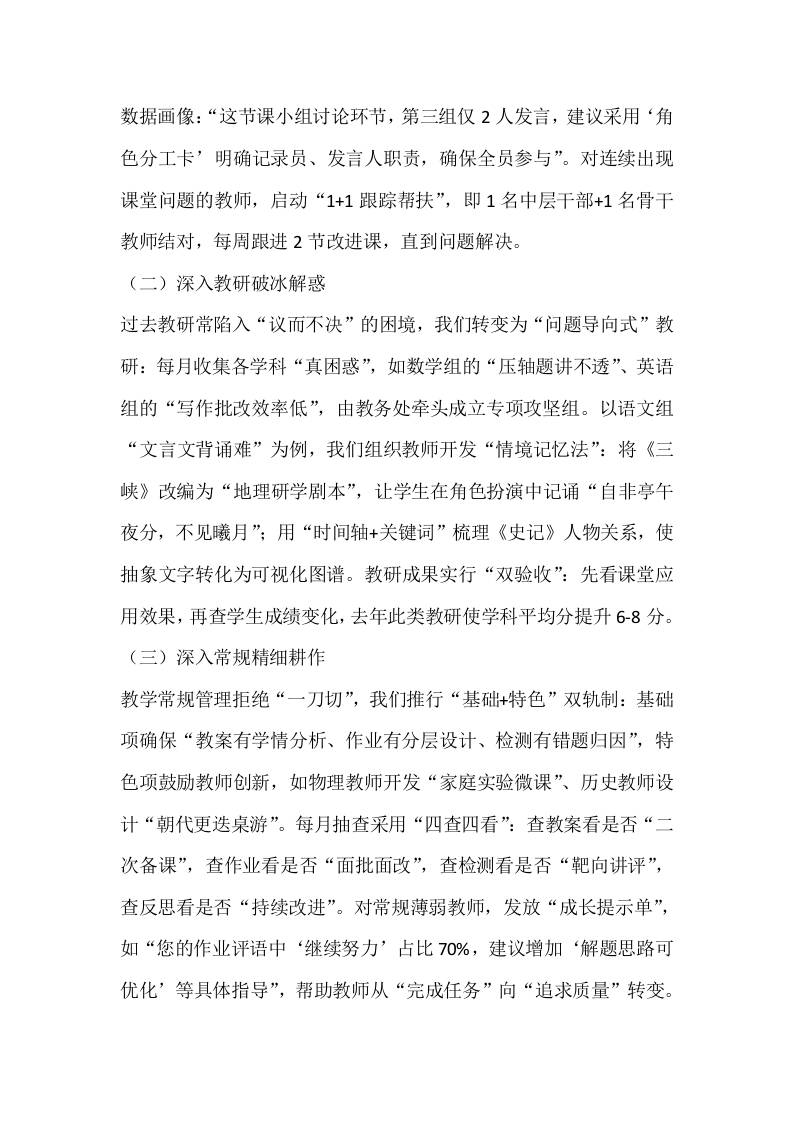 教学副校长管理经验交流会上的发言:破解教学管理五密码——从课堂到成长的实践与思考子渊4个月前发布关注私信02810 ——预览已结束,还剩6页未读——开通会员后可免费下载高清完整文档 教学副校长管理经验交流会上的发言:破解教学管理五密码——从课堂到成长的实践与思考此内容为付费资源,请付费后查看¥19.9¥999普通会员免费超级会员免费立即购买您当前未登录!建议登陆后购买,可保存购买订单格式docx页数8 页大小17.59 KB付费资源© 版权声明文章版权归作者所有,未经允许请勿转载。THE END发言稿 喜欢就支持一下吧点赞10 分享QQ空间微博QQ好友海报分享复制链接收藏