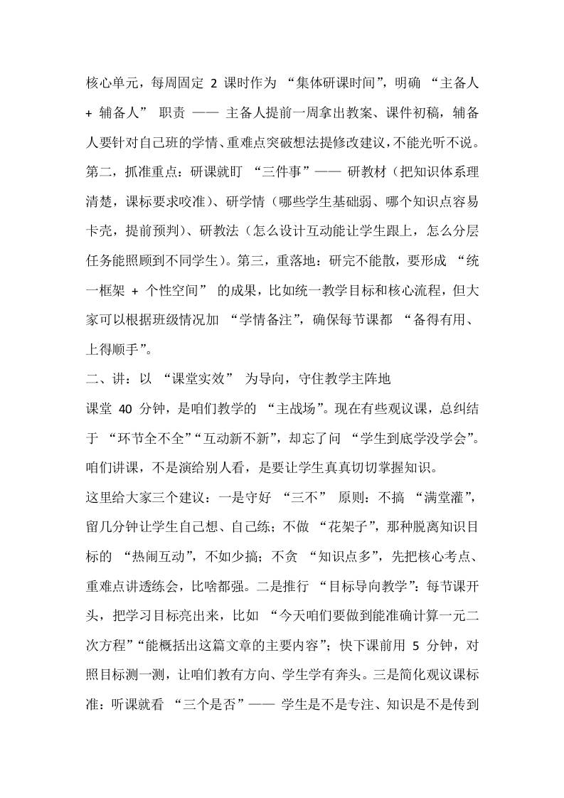 抓实教学七常规:“备、讲、批、辅、考、评、研”,筑牢质量生命线——副校长在全体教师大会上的发言子渊4个月前发布关注私信0518 ——预览已结束,还剩4页未读——开通会员后可免费下载高清完整文档 抓实教学七常规:“备、讲、批、辅、考、评、研”,筑牢质量生命线——副校长在全体教师大会上的发言此内容为付费资源,请付费后查看¥18.8¥999普通会员免费超级会员免费立即购买您当前未登录!建议登陆后购买,可保存购买订单格式docx页数6 页大小15.64 KB付费资源© 版权声明文章版权归作者所有,未经允许请勿转载。THE END发言稿 喜欢就支持一下吧点赞8 分享QQ空间微博QQ好友海报分享复制链接收藏