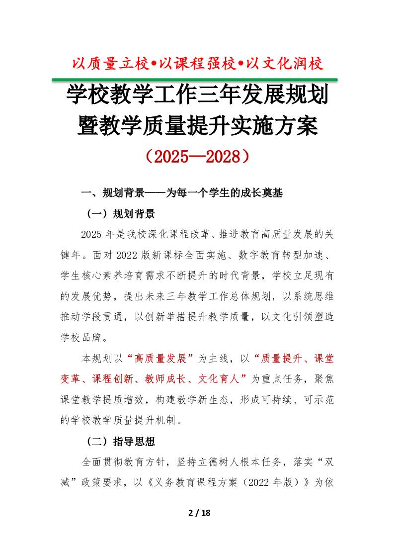 学校教学工作三年(2025-2028)发展规划暨教学质量提升实施方案:以质量立校,以课程强校,以文化润校子渊4个月前发布关注私信02111 ——预览已结束,还剩16页未读——开通会员后可免费下载高清完整文档 学校教学工作三年(2025-2028)发展规划暨教学质量提升实施方案:以质量立校,以课程强校,以文化润校此内容为付费资源,请付费后查看¥19.9¥999普通会员免费超级会员免费立即购买您当前未登录!建议登陆后购买,可保存购买订单格式docx页数18 页大小874.37 KB付费资源© 版权声明文章版权归作者所有,未经允许请勿转载。THE END管理相关 喜欢就支持一下吧点赞11 分享QQ空间微博QQ好友海报分享复制链接收藏
