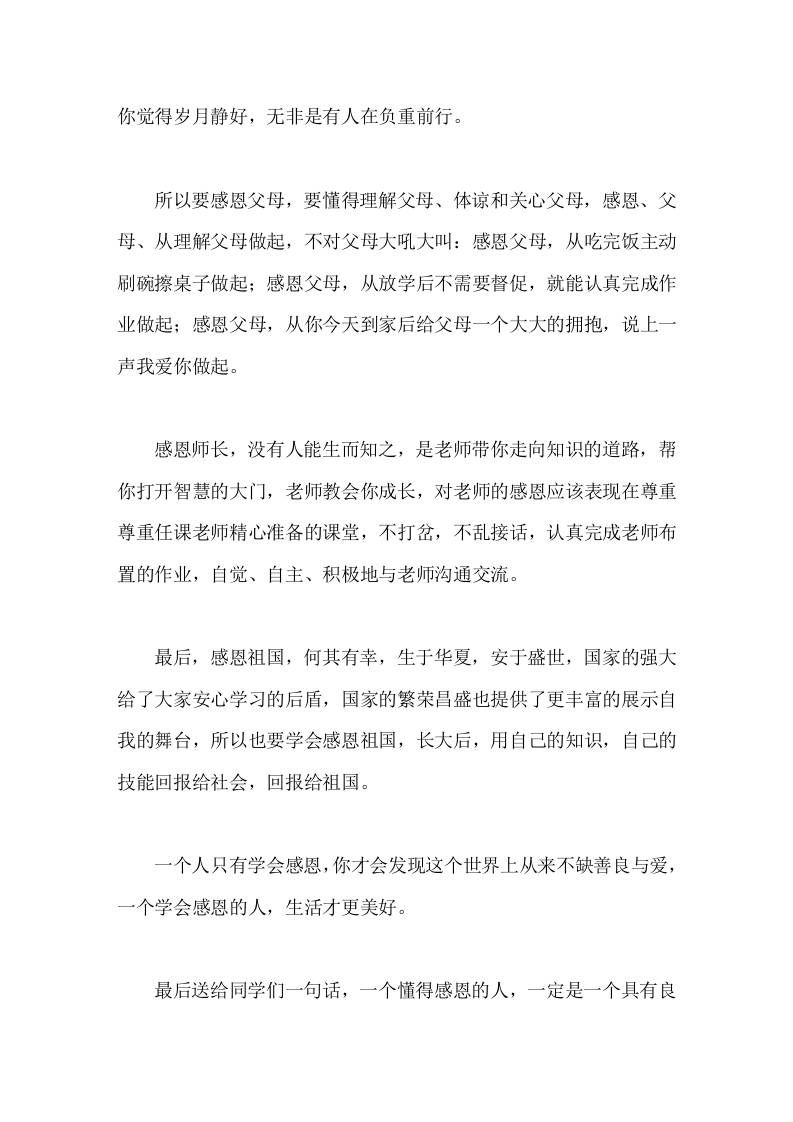 校长在国旗下讲话学会感恩,学会做人子渊3个月前发布关注私信04715 ——预览已结束,还剩1页未读——开通会员后可免费下载高清完整文档 校长在国旗下讲话学会感恩,学会做人此内容为付费资源,请付费后查看¥19.9¥999普通会员免费超级会员免费立即购买您当前未登录!建议登陆后购买,可保存购买订单格式doc页数3 页大小13.00 KB付费资源© 版权声明文章版权归作者所有,未经允许请勿转载。THE END国旗下讲话 喜欢就支持一下吧点赞15 分享QQ空间微博QQ好友海报分享复制链接收藏