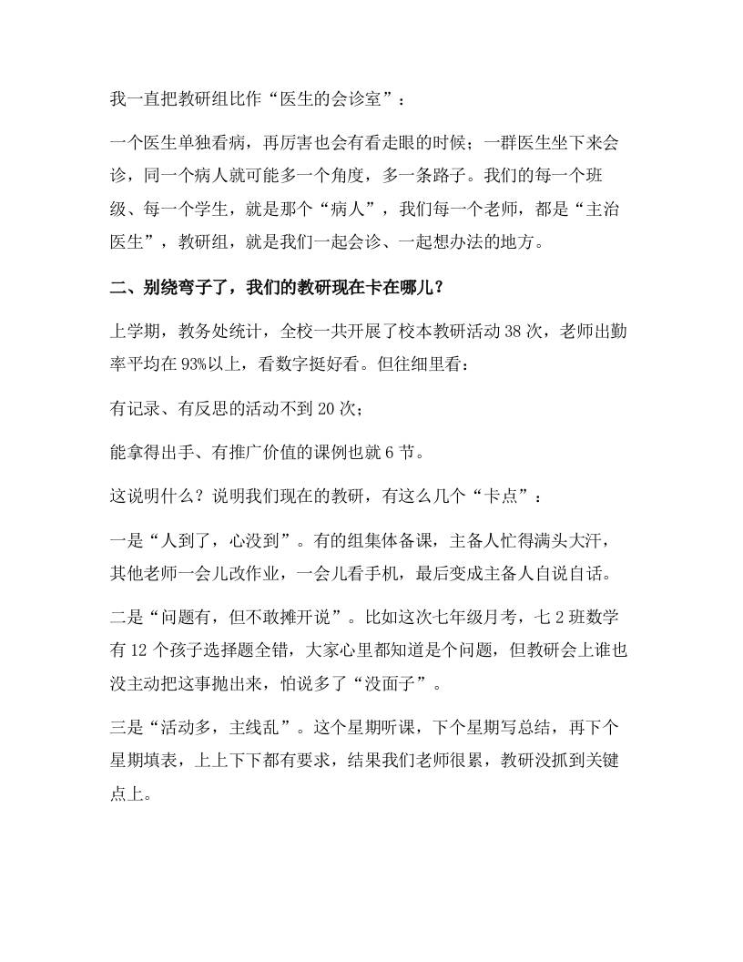 校长在教师会议上发言:从“例行开会”到“一起长本事”——让教研组真正活起来!子渊3个月前发布关注私信0219 ——预览已结束,还剩4页未读——开通会员后可免费下载高清完整文档 校长在教师会议上发言:从“例行开会”到“一起长本事”——让教研组真正活起来!此内容为付费资源,请付费后查看¥18.8¥999普通会员免费超级会员免费立即购买您当前未登录!建议登陆后购买,可保存购买订单格式docx页数6 页大小19.03 KB付费资源© 版权声明文章版权归作者所有,未经允许请勿转载。THE END发言稿 喜欢就支持一下吧点赞9 分享QQ空间微博QQ好友海报分享复制链接收藏
