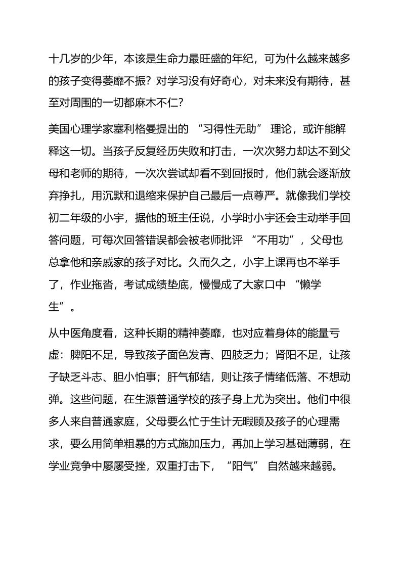 别再只怪学生“懒”:“生源差”学校,该给孩子补补“阳气”了子渊3个月前发布关注私信05011 ——预览已结束,还剩11页未读——开通会员后可免费下载高清完整文档 别再只怪学生“懒”:“生源差”学校,该给孩子补补“阳气”了此内容为付费资源,请付费后查看¥19.9¥999普通会员免费超级会员免费立即购买您当前未登录!建议登陆后购买,可保存购买订单格式docx页数13 页大小21.93 KB付费资源© 版权声明文章版权归作者所有,未经允许请勿转载。THE END发言稿 喜欢就支持一下吧点赞11 分享QQ空间微博QQ好友海报分享复制链接收藏