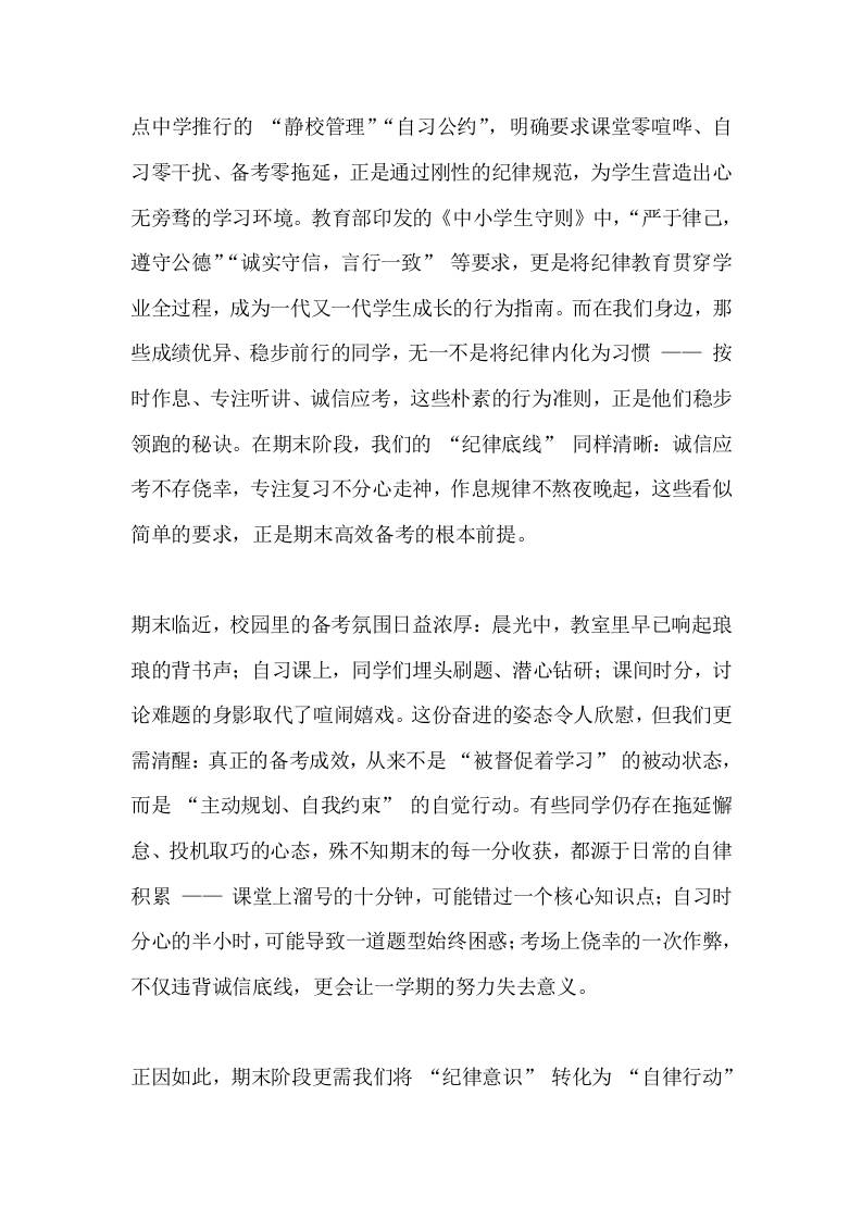 期末阶段,校长在国旗下讲话:让自律为期末冲刺护航子渊1个月前发布关注私信0295 ——预览已结束,还剩2页未读——开通会员后可免费下载高清完整文档 期末阶段,校长在国旗下讲话:让自律为期末冲刺护航此内容为付费资源,请付费后查看¥19.9¥999普通会员免费超级会员免费立即购买您当前未登录!建议登陆后购买,可保存购买订单格式docx页数4 页大小13.43 KB付费资源© 版权声明文章版权归作者所有,未经允许请勿转载。THE END国旗下讲话 喜欢就支持一下吧点赞5 分享QQ空间微博QQ好友海报分享复制链接收藏