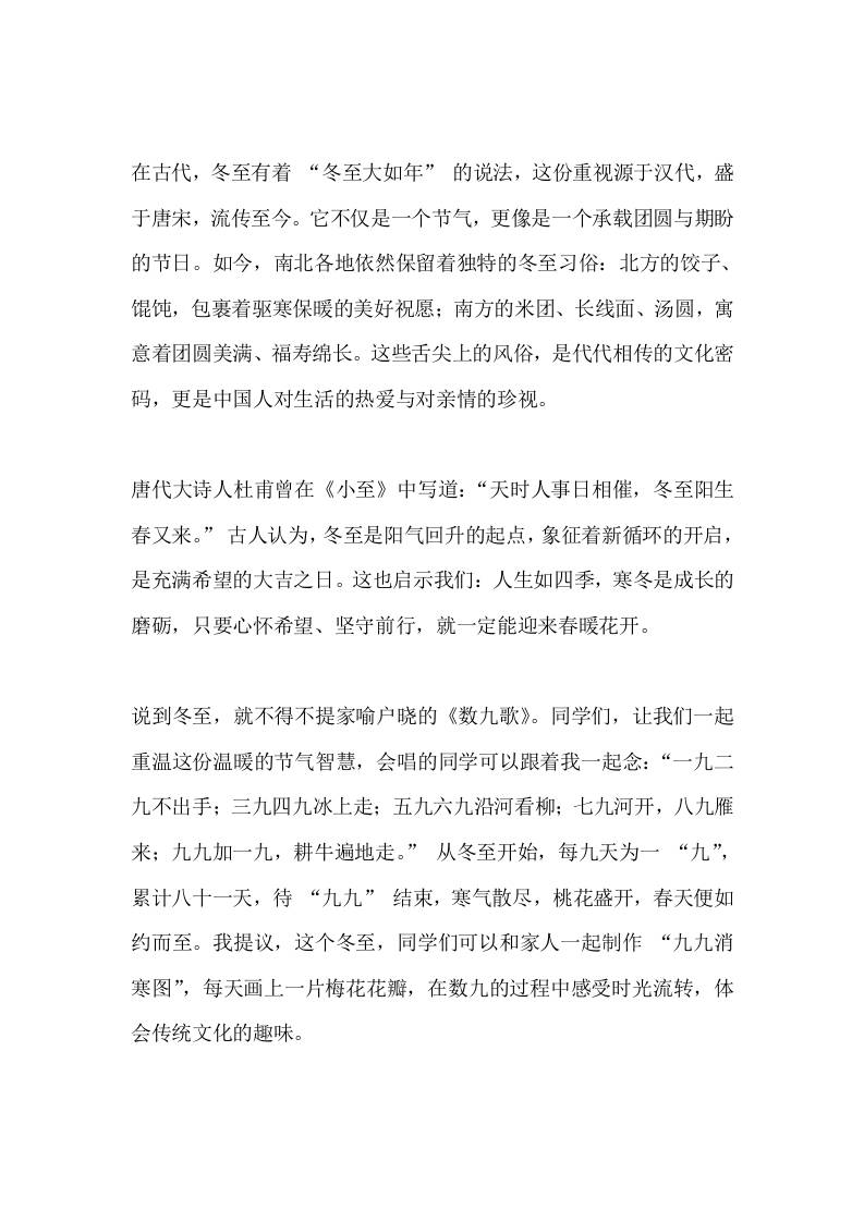 2025冬至快到了,校长在国旗下讲话:感知风俗,情暖冬至子渊1个月前发布关注私信0225 ——预览已结束,还剩1页未读——开通会员后可免费下载高清完整文档 2025冬至快到了,校长在国旗下讲话:感知风俗,情暖冬至此内容为付费资源,请付费后查看¥18.8¥999普通会员免费超级会员免费立即购买您当前未登录!建议登陆后购买,可保存购买订单格式docx页数3 页大小12.53 KB付费资源© 版权声明文章版权归作者所有,未经允许请勿转载。THE END国旗下讲话 喜欢就支持一下吧点赞5 分享QQ空间微博QQ好友海报分享复制链接收藏