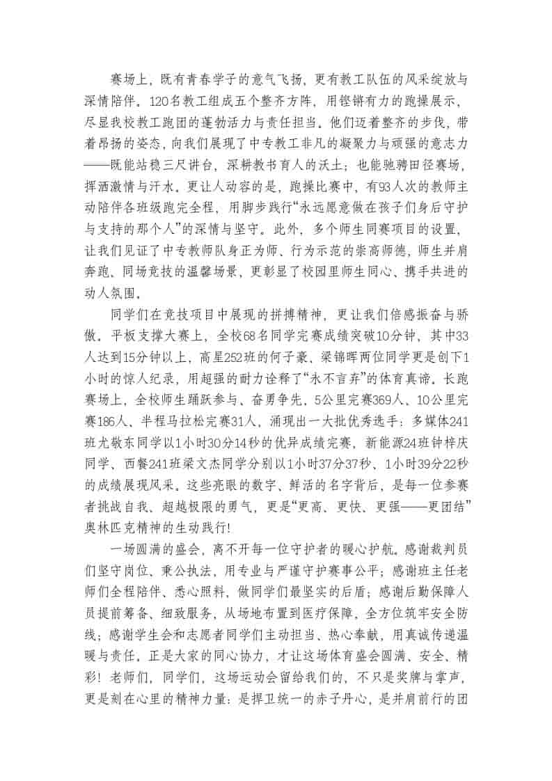在学校第XX届田径运动会闭幕式上的讲话:将赛道精神刻入青春底色子渊47天前发布关注私信04015 ——预览已结束,还剩1页未读——开通会员后可免费下载高清完整文档 在学校第XX届田径运动会闭幕式上的讲话:将赛道精神刻入青春底色此内容为付费资源,请付费后查看¥19.9¥999普通会员免费超级会员免费立即购买您当前未登录!建议登陆后购买,可保存购买订单格式docx页数3 页大小629.29 KB付费资源© 版权声明文章版权归作者所有,未经允许请勿转载。THE END发言稿 喜欢就支持一下吧点赞15 分享QQ空间微博QQ好友海报分享复制链接收藏
