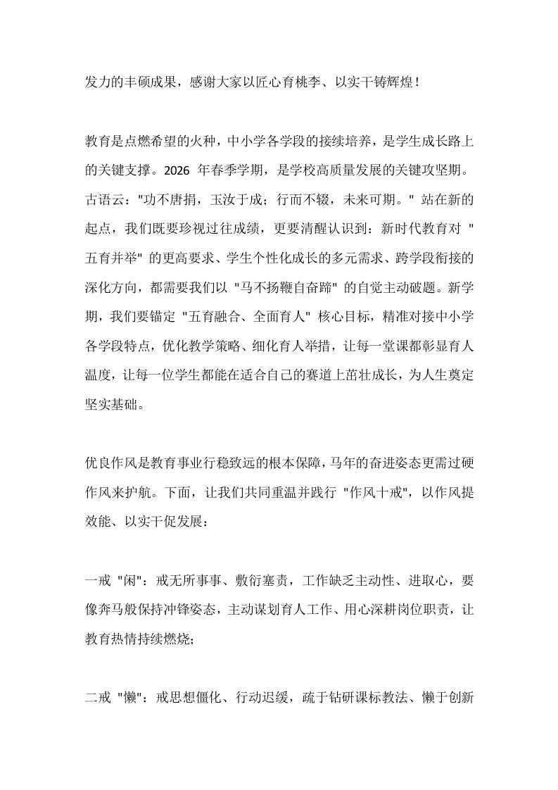 骏马扬蹄开新局,五育并举育新人——2026丙午马年春季学期全体职工大会校长讲话子渊21天前发布关注私信02311 ——预览已结束,还剩3页未读——开通会员后可免费下载高清完整文档 骏马扬蹄开新局,五育并举育新人——2026丙午马年春季学期全体职工大会校长讲话此内容为付费资源,请付费后查看¥18.8¥999普通会员免费超级会员免费立即购买您当前未登录!建议登陆后购买,可保存购买订单格式docx页数5 页大小14.50 KB付费资源© 版权声明文章版权归作者所有,未经允许请勿转载。THE END发言稿 喜欢就支持一下吧点赞11 分享QQ空间微博QQ好友海报分享复制链接收藏