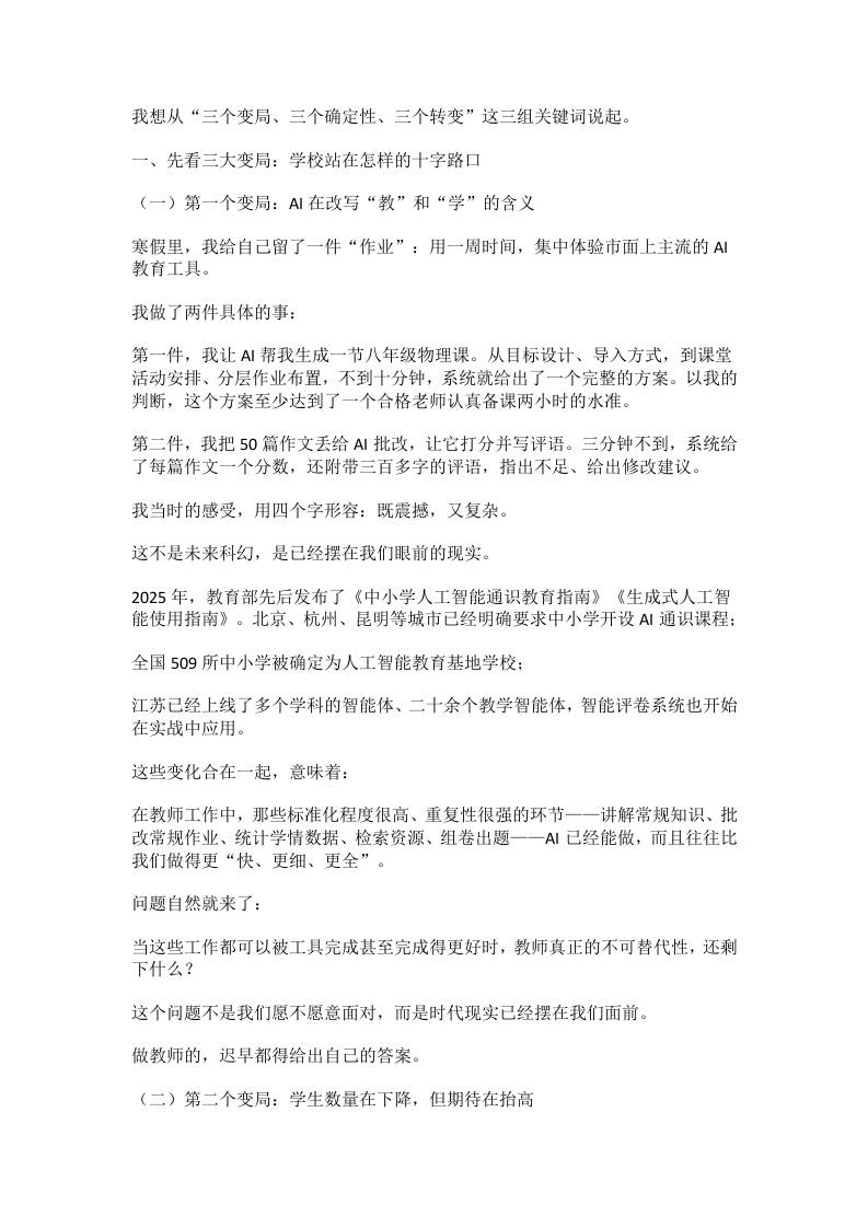 2026春季开学校长讲话稿:大格局!3个变局、3个确定性、3个转变子渊20天前发布关注私信0425 ——预览已结束,还剩8页未读——开通会员后可免费下载高清完整文档 2026春季开学校长讲话稿:大格局!3个变局、3个确定性、3个转变此内容为付费资源,请付费后查看¥18.8¥999普通会员免费超级会员免费立即购买您当前未登录!建议登陆后购买,可保存购买订单格式docx页数10 页大小20.94 KB付费资源© 版权声明文章版权归作者所有,未经允许请勿转载。THE END发言稿 喜欢就支持一下吧点赞5 分享QQ空间微博QQ好友海报分享复制链接收藏