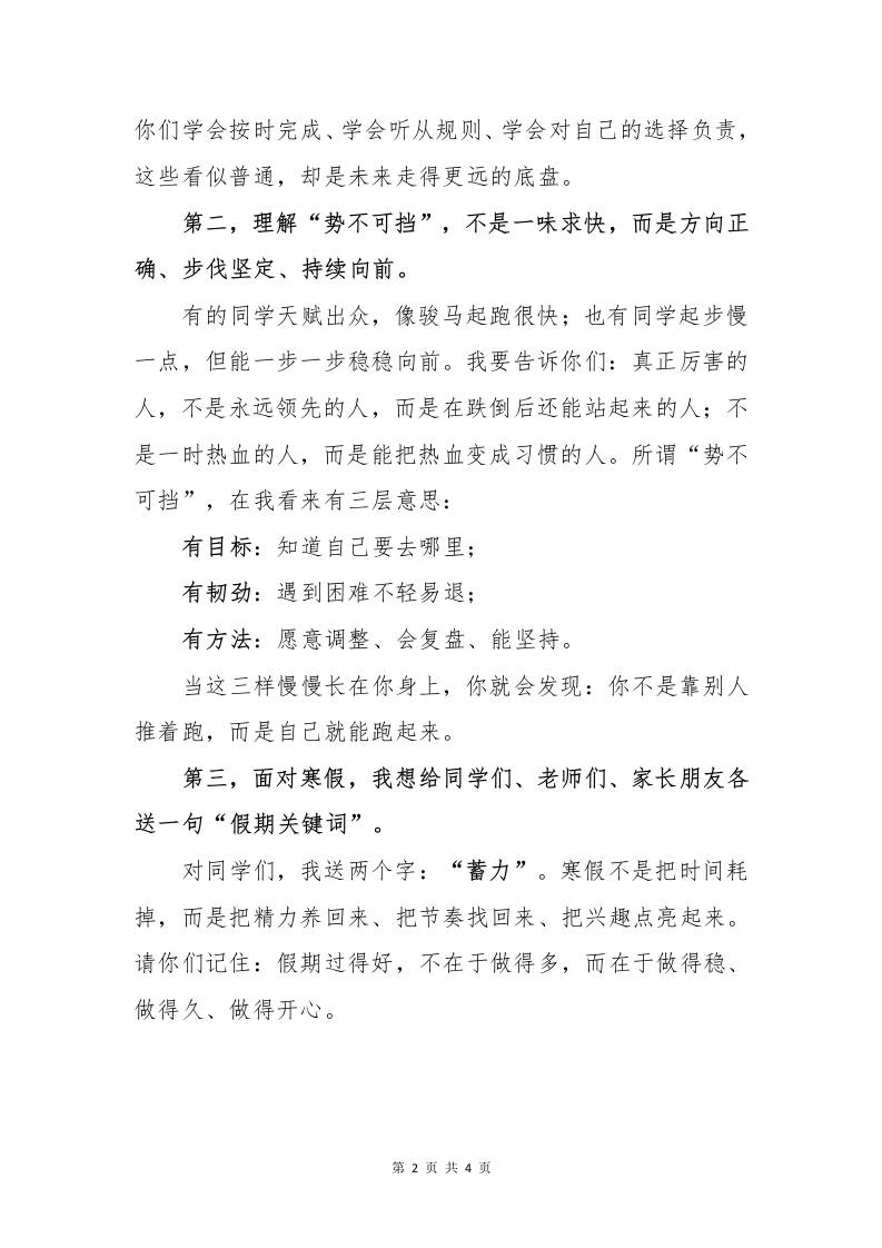 2026年散学典礼校长讲话稿——骐骥驰骋,势不可挡子渊19天前发布关注私信03615 ——预览已结束,还剩2页未读——开通会员后可免费下载高清完整文档 2026年散学典礼校长讲话稿——骐骥驰骋,势不可挡此内容为付费资源,请付费后查看¥18.8¥999普通会员免费超级会员免费立即购买您当前未登录!建议登陆后购买,可保存购买订单格式docx页数4 页大小184.95 KB付费资源© 版权声明文章版权归作者所有,未经允许请勿转载。THE END发言稿 喜欢就支持一下吧点赞15 分享QQ空间微博QQ好友海报分享复制链接收藏