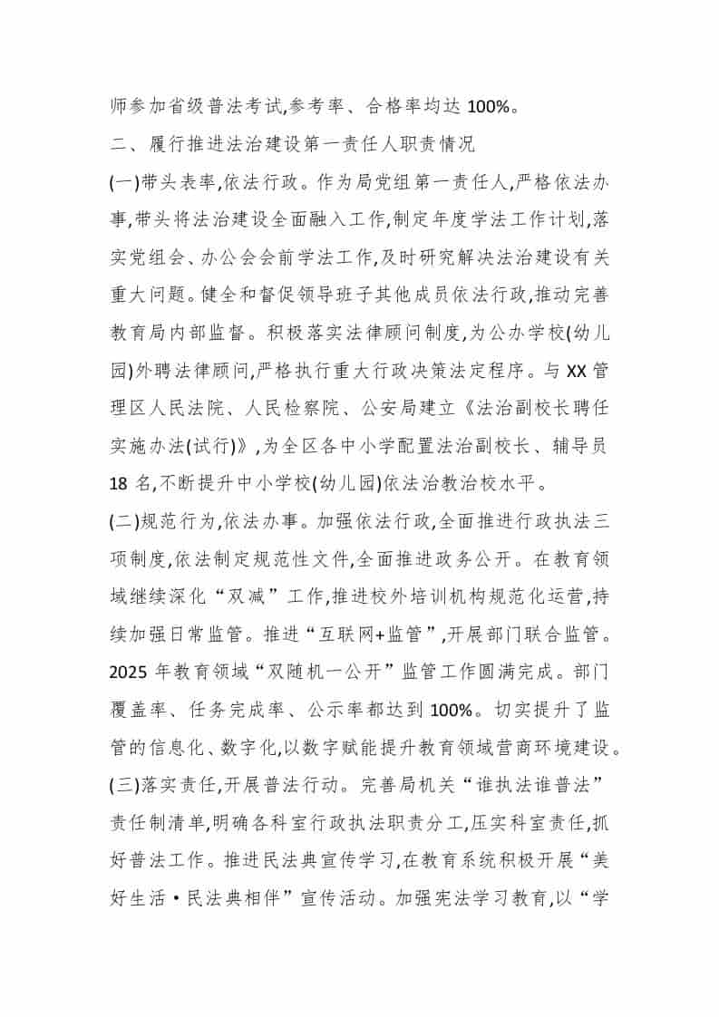 区教育体育局党组书记、局长2025年度履行推进法治建设第一责任人职责述职报告子渊19小时前发布关注私信03715 ——预览已结束,还剩2页未读——开通会员后可免费下载高清完整文档 区教育体育局党组书记、局长2025年度履行推进法治建设第一责任人职责述职报告此内容为付费资源,请付费后查看¥18.8¥999普通会员免费超级会员免费立即购买您当前未登录!建议登陆后购买,可保存购买订单格式docx页数4 页大小13.64 KB付费资源© 版权声明文章版权归作者所有,未经允许请勿转载。THE END管理相关 喜欢就支持一下吧点赞15 分享QQ空间微博QQ好友海报分享复制链接收藏