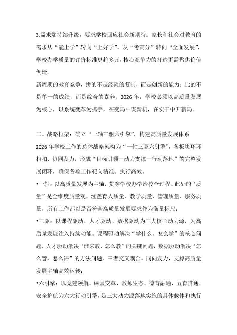 学校2026年工作思路:锚定“十五五”开局坐标,以“一轴三驱六引擎”激活学校教育发展新动能子渊12小时前发布关注私信02312 ——预览已结束,还剩13页未读——开通会员后可免费下载高清完整文档 学校2026年工作思路:锚定“十五五”开局坐标,以“一轴三驱六引擎”激活学校教育发展新动能此内容为付费资源,请付费后查看¥18.8¥999普通会员免费超级会员免费立即购买您当前未登录!建议登陆后购买,可保存购买订单格式docx页数15 页大小23.67 KB付费资源© 版权声明文章版权归作者所有,未经允许请勿转载。THE END管理相关 喜欢就支持一下吧点赞12 分享QQ空间微博QQ好友海报分享复制链接收藏