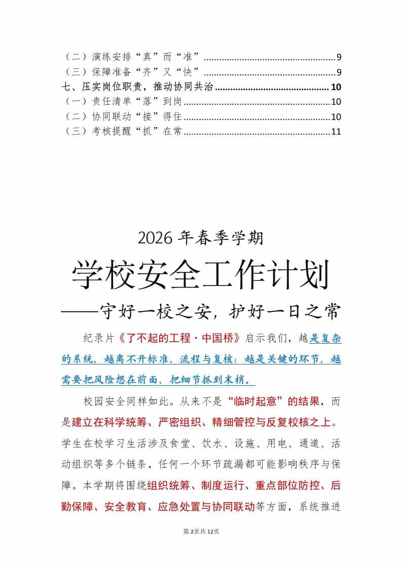 2026年春季学期学校安全工作计划——守好一校之安,护好一日之常子渊11小时前发布关注私信02213 ——预览已结束,还剩10页未读——开通会员后可免费下载高清完整文档 2026年春季学期学校安全工作计划——守好一校之安,护好一日之常此内容为付费资源,请付费后查看¥19.9¥999普通会员免费超级会员免费立即购买您当前未登录!建议登陆后购买,可保存购买订单格式docx页数12 页大小560.37 KB付费资源© 版权声明文章版权归作者所有,未经允许请勿转载。THE END工作计划 喜欢就支持一下吧点赞13 分享QQ空间微博QQ好友海报分享复制链接收藏