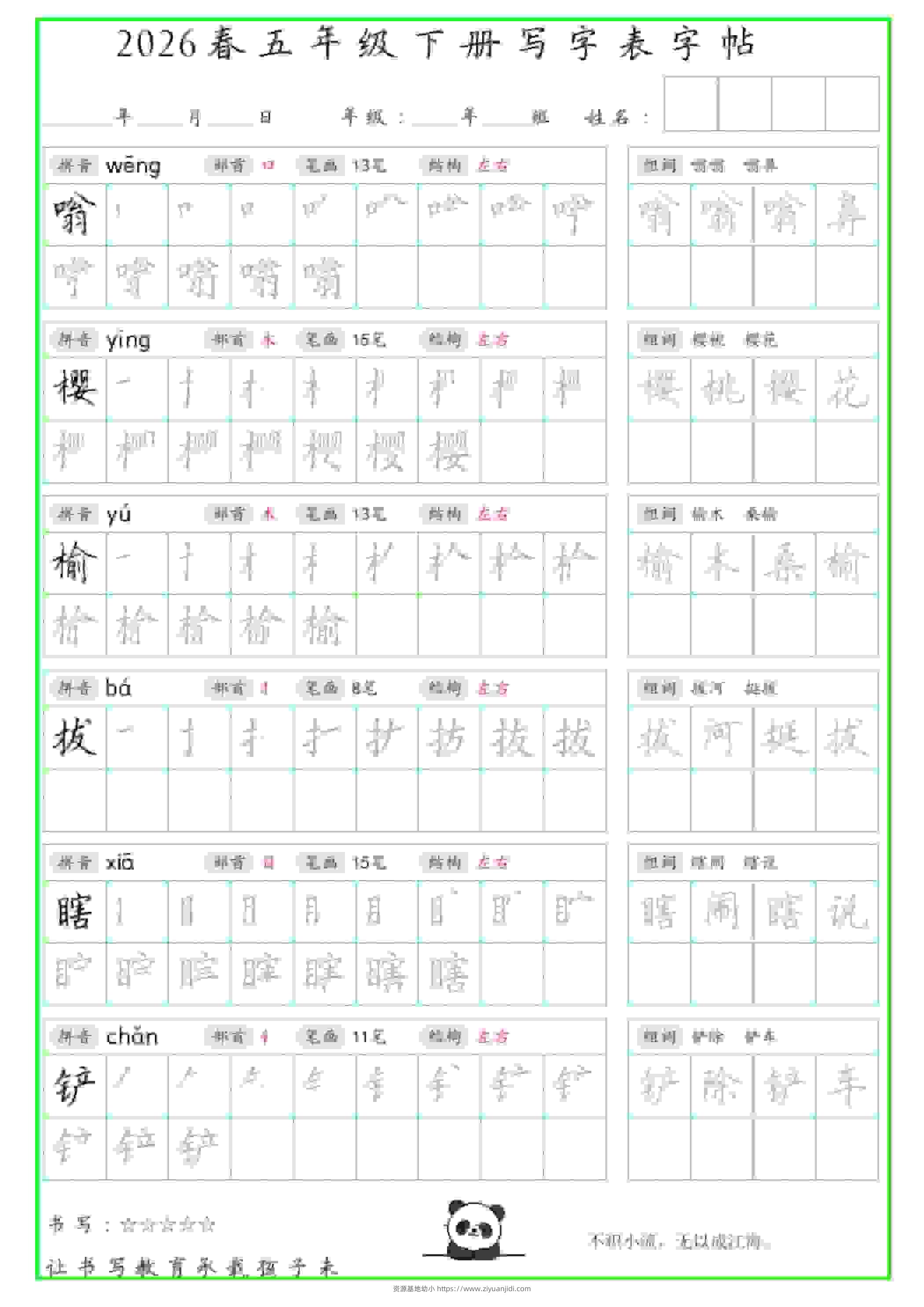 五年级下语文写字表笔顺组词字帖(绿色)子渊9小时前发布关注私信02511 ——预览已结束,还剩28页未读——开通会员后可免费下载高清完整文档 五年级下语文写字表笔顺组词字帖(绿色)此内容为付费资源,请付费后查看¥18.8¥999普通会员免费超级会员免费立即购买您当前未登录!建议登陆后购买,可保存购买订单格式pdf页数30 页大小4.92 MB付费资源© 版权声明文章版权归作者所有,未经允许请勿转载。THE END小学语文 喜欢就支持一下吧点赞11 分享QQ空间微博QQ好友海报分享复制链接收藏