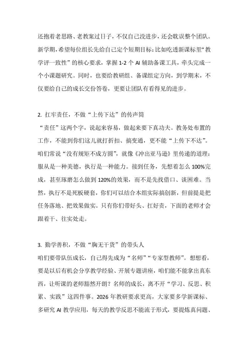 2026年春季学期教研组长、备课组长会议校长讲话:扛好骨干担子,带好教研队伍,助力学校高质量发展子渊15小时前发布关注私信0246 ——预览已结束,还剩2页未读——开通会员后可免费下载高清完整文档 2026年春季学期教研组长、备课组长会议校长讲话:扛好骨干担子,带好教研队伍,助力学校高质量发展此内容为付费资源,请付费后查看¥18.8¥999普通会员免费超级会员免费立即购买您当前未登录!建议登陆后购买,可保存购买订单格式docx页数4 页大小13.82 KB付费资源© 版权声明文章版权归作者所有,未经允许请勿转载。THE END发言稿 喜欢就支持一下吧点赞6 分享QQ空间微博QQ好友海报分享复制链接收藏