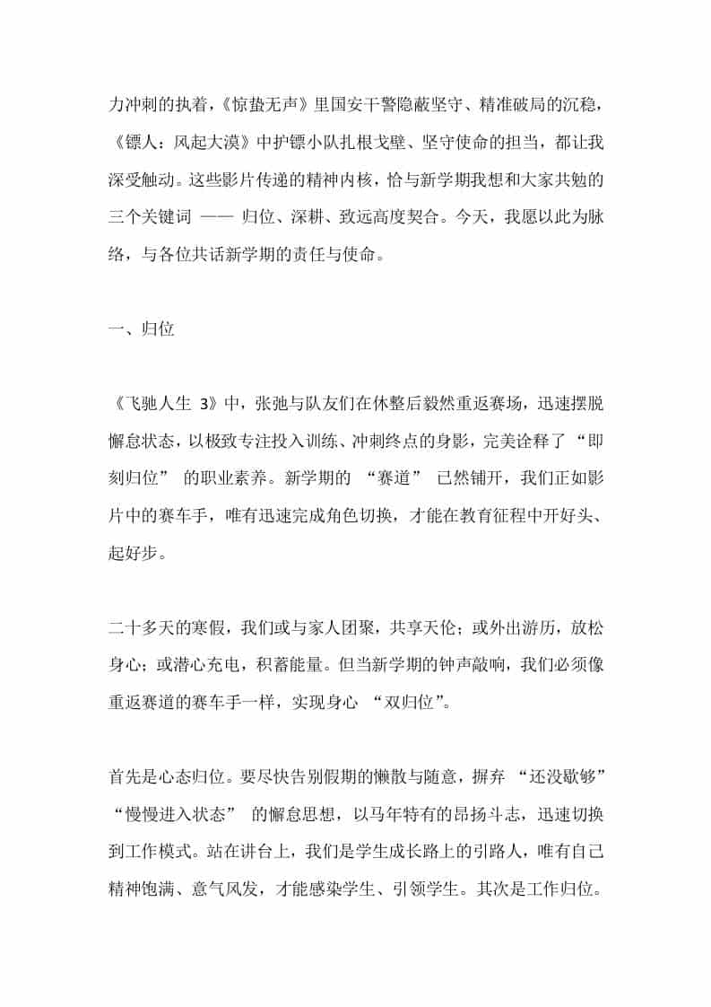 2026春季新学期第一次教师大会,校长发言:归位,深耕,致远子渊8小时前发布关注私信02511 ——预览已结束,还剩4页未读——开通会员后可免费下载高清完整文档 2026春季新学期第一次教师大会,校长发言:归位,深耕,致远此内容为付费资源,请付费后查看¥19.9¥999普通会员免费超级会员免费立即购买您当前未登录!建议登陆后购买,可保存购买订单格式docx页数6 页大小15.22 KB付费资源© 版权声明文章版权归作者所有,未经允许请勿转载。THE END发言稿 喜欢就支持一下吧点赞11 分享QQ空间微博QQ好友海报分享复制链接收藏