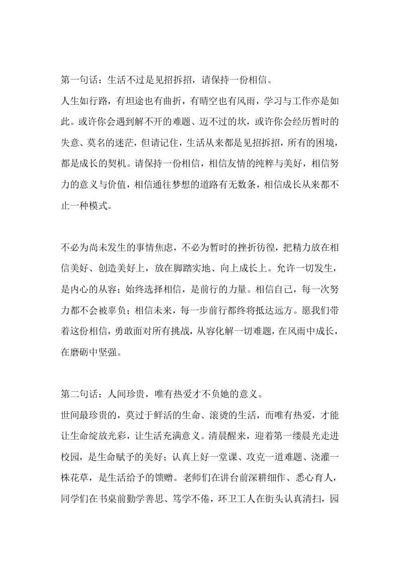 2026年春季开学典礼校长讲话:三句箴言寄初心,策马扬鞭赴新程子渊18小时前发布关注私信02915 ——预览已结束,还剩3页未读——开通会员后可免费下载高清完整文档 2026年春季开学典礼校长讲话:三句箴言寄初心,策马扬鞭赴新程此内容为付费资源,请付费后查看¥18.8¥999普通会员免费超级会员免费立即购买您当前未登录!建议登陆后购买,可保存购买订单格式docx页数5 页大小14.05 KB付费资源© 版权声明文章版权归作者所有,未经允许请勿转载。THE END发言稿 喜欢就支持一下吧点赞15 分享QQ空间微博QQ好友海报分享复制链接收藏